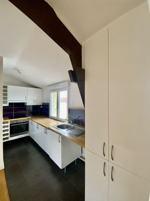 contemporaine aménagée ouverte sur le séjour (double vitrages et volets roulant électrique). 2 chambres avec doubles vitrages et volets roulants électrique. Tableau électrique récent. Sol rénové.